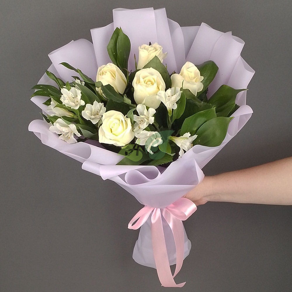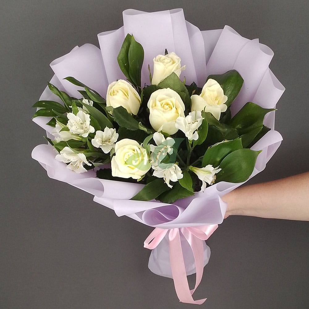 Состав и характеристики букета из альстромрий и роз"Свежесть":